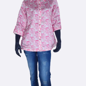 White and Pink Beaded georgette Satin Shirt