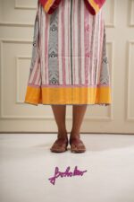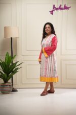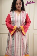 Cream-Pink quare print Kaftan