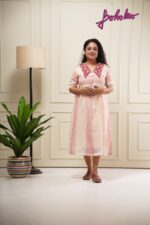 Light Pink Cotton Georgette dress with Frida embroidery and matching embroidered Belt.
