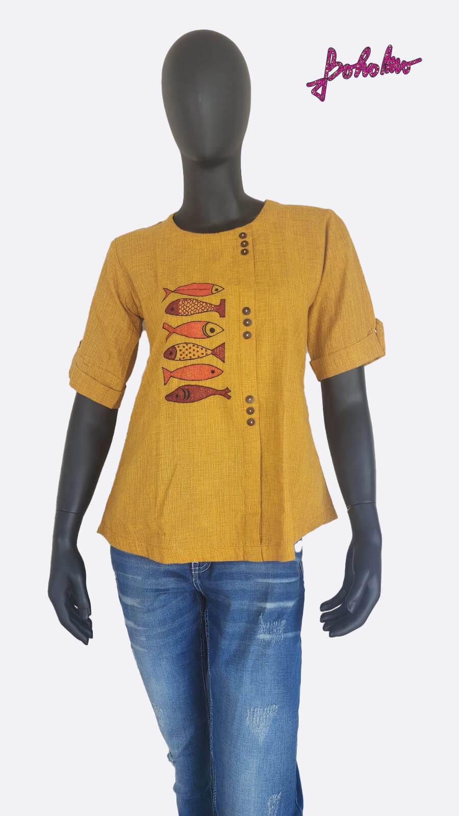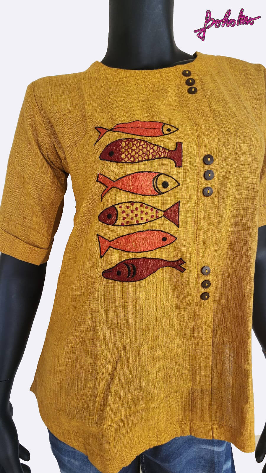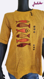 Mustard Top with Fish Embroidery