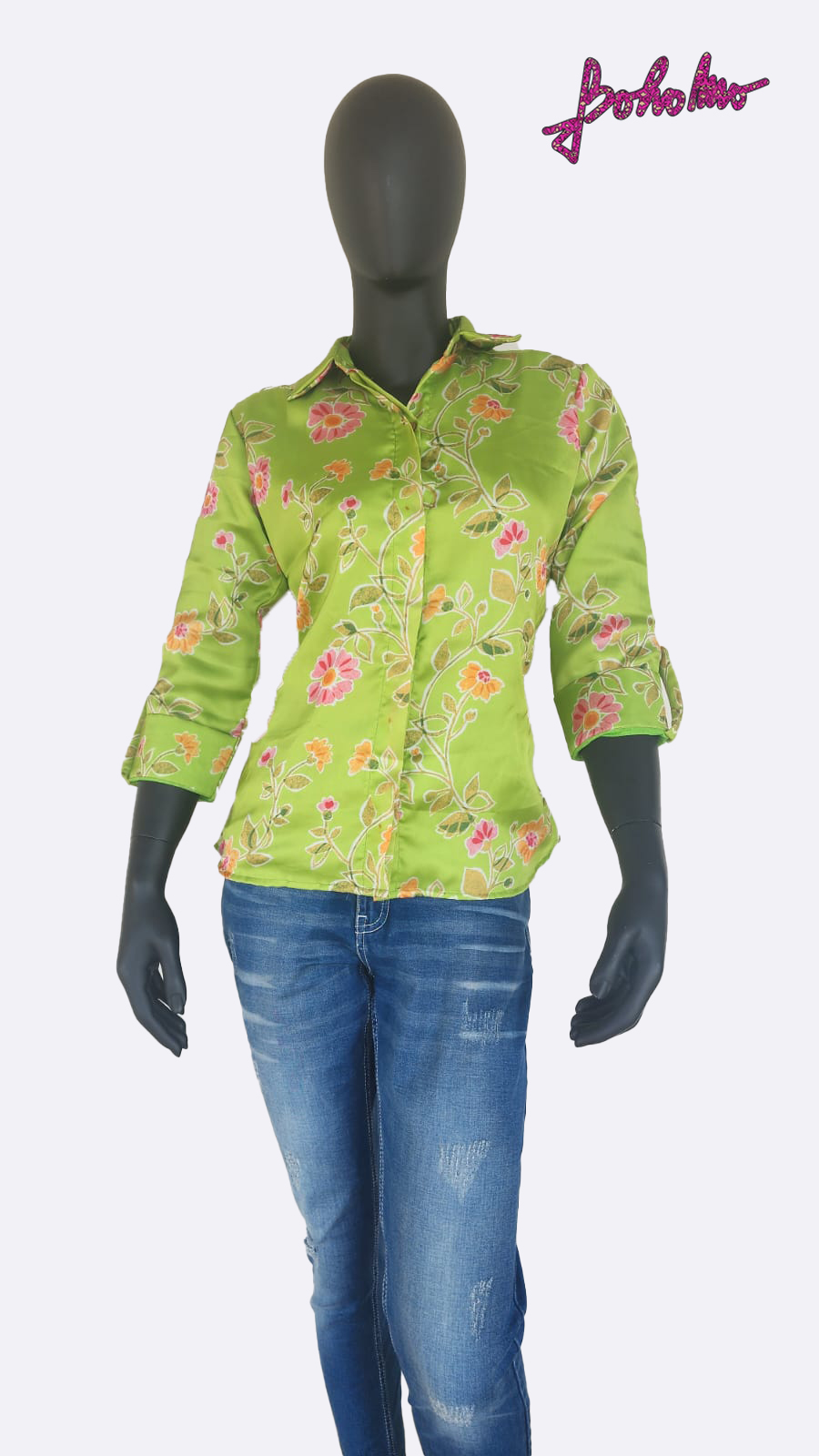 Parrot Green Georgette Satin Shirt
