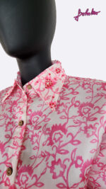 White and Pink Beaded georgette Satin Shirt