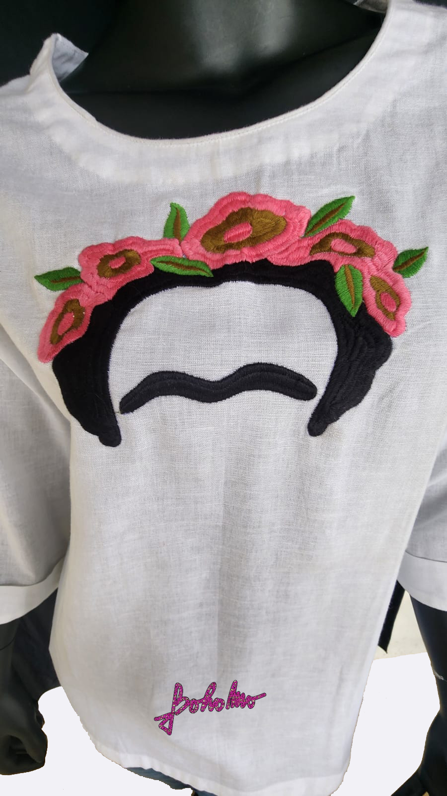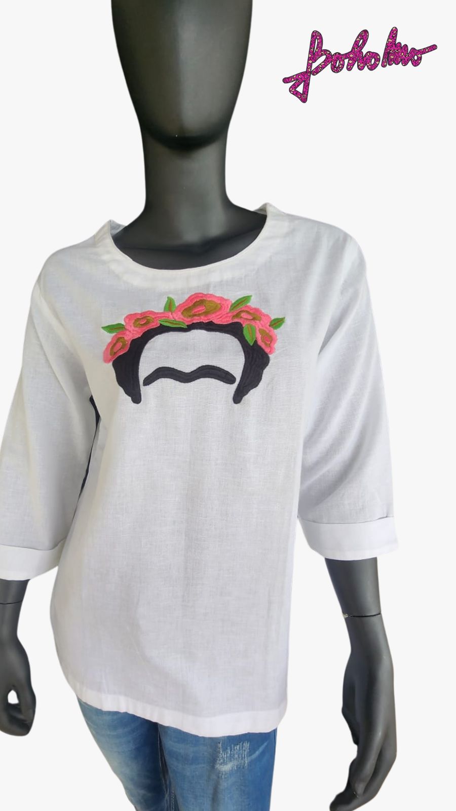 White Khadi Cotton Kurta top with embroidery of Frida